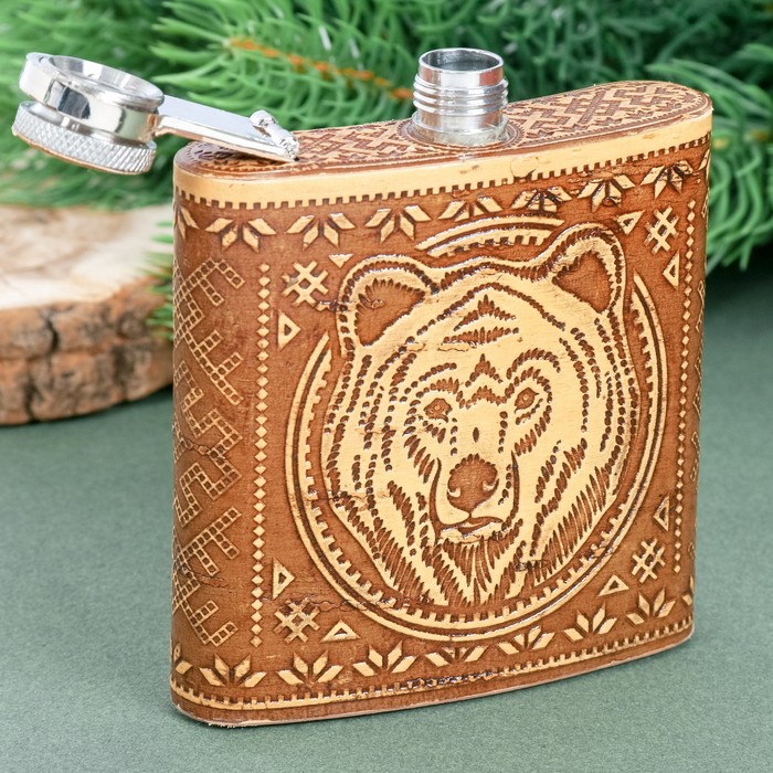 Фляжка из бересты "Россия. Медведь", 180 мл