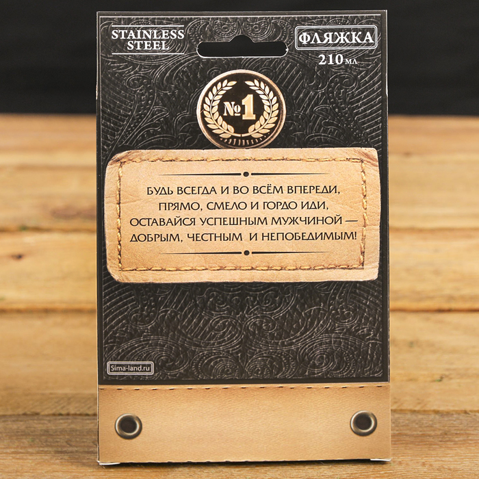 Изделие изготовлено из нержавеющей стали, которой нипочём удары. При этом материал очень лёгкий, поэтому фляжку можно смело брать с собой в поход или на пикник. Изделие дополнено приятной текстильной оплёткой и шильдом из экокожи.
