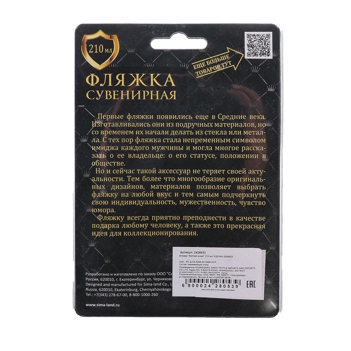Фляжка "Волчий оскал" 210 мл УЦЕНКА — сувенир в полном смысле этого слова. И главная его задача — хранить воспоминание о месте, где вы побывали, или о том человеке, который подарил данный предмет. Преподнесите эту вещь своему другу, и она станет достойным украшением его дома.
