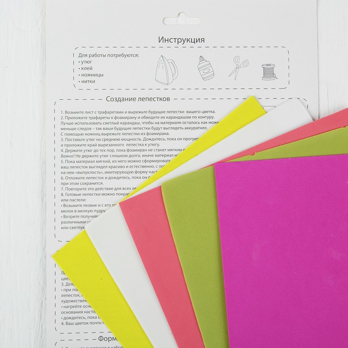 При работе с набором вам понадобится нагревательный прибор (утюг). Он придаст плоским деталям объём. А также не забудьте клей, ножницы и нитки.
