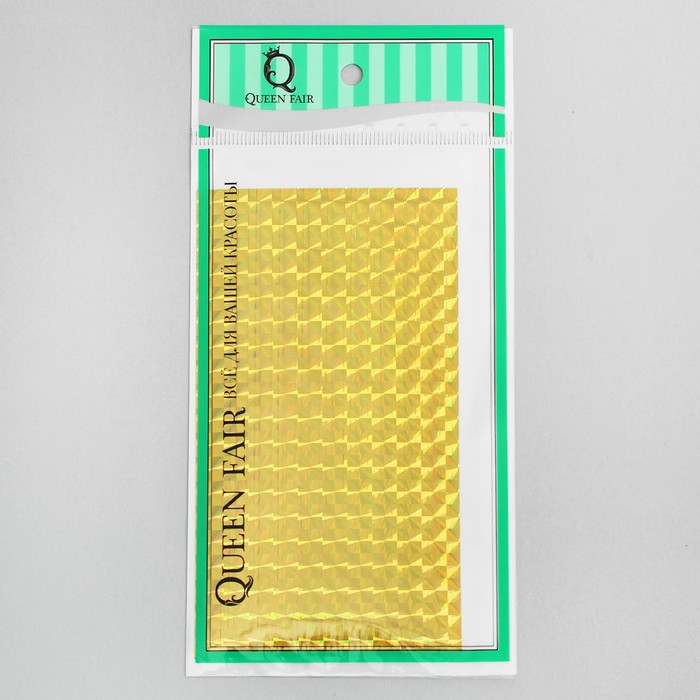Фольга для дизайна ногтей "Голография. Квадраты", клеевая, 30 полосок на листе, 12,5см, цвет золотой
