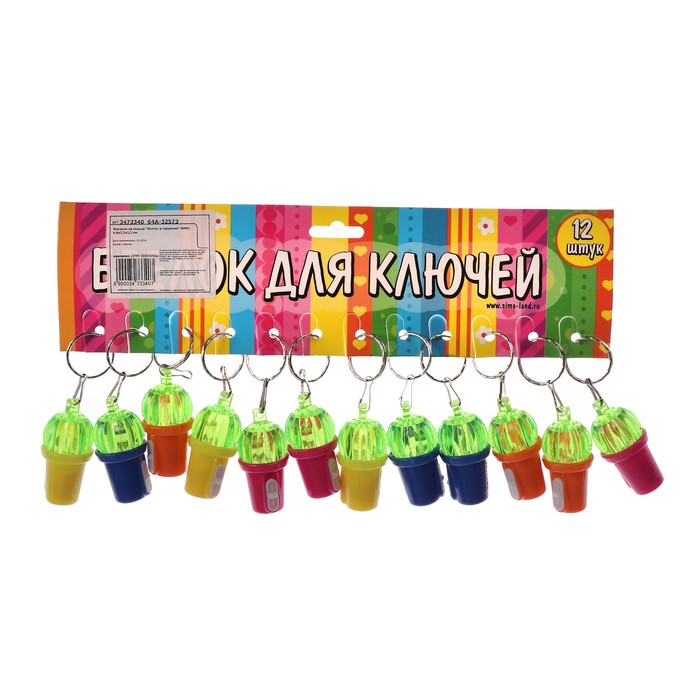 Фонарик на кольце "Кактус в горшочке" МИКС 4,6х2,3х2,3 см