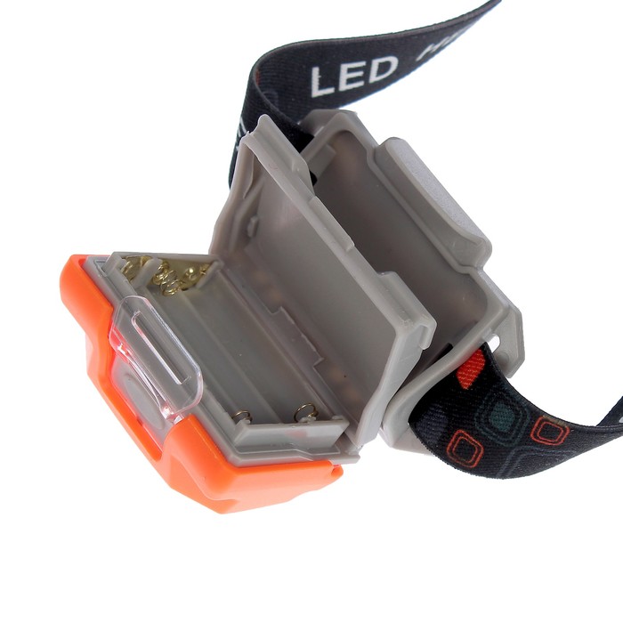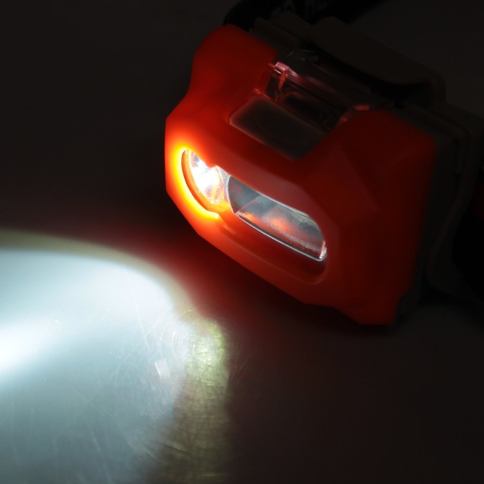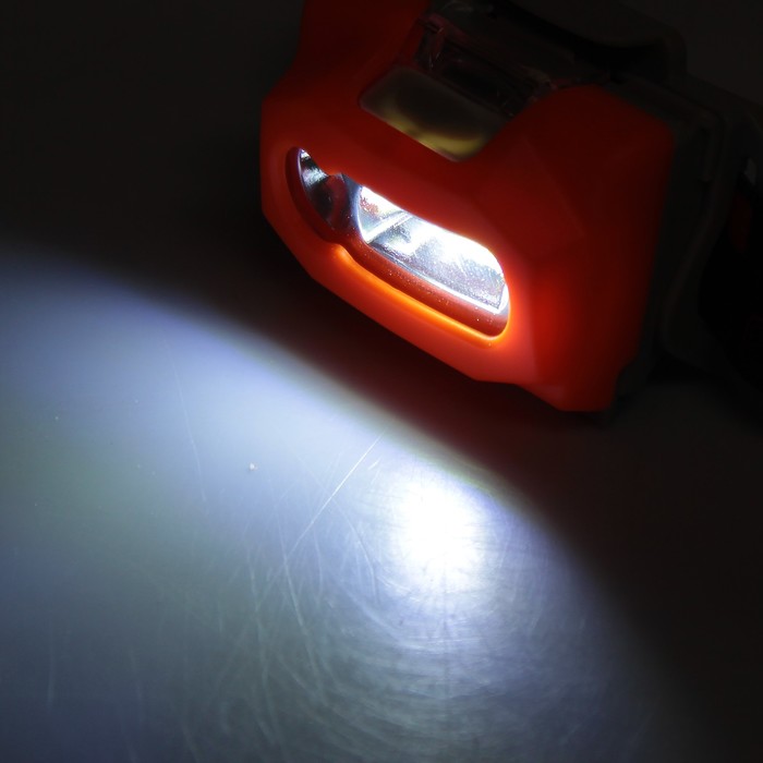 Фонарик налобный, серия Цветные, 1диод+COB лента, водонепроницаемый, 3 ААА, оранжевый,