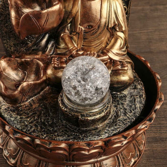 Фонтан настольный полистоун 220В "Будда у грота с лотосами" 30х21х21 см