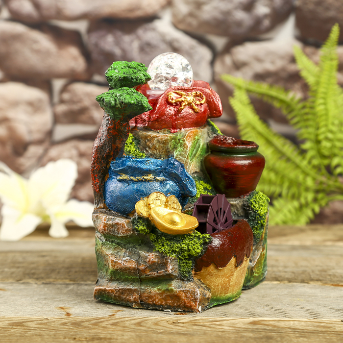 Каждому хозяину периодически приходит мысль обновить свою квартиру, сделать ремонт, перестановку или кардинально поменять внешний вид каждой комнаты. Фонтан настольный полистоун от сети "Мешки со слитками золота и монетами" 19х16х12 см — привлекательная деталь, которая поможет воплотить вашу интерьерную идею, создать неповторимую атмосферу в вашем доме. Окружите себя приятными мелочами, пусть они радуют глаз и дарят гармонию.