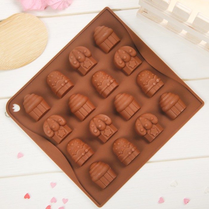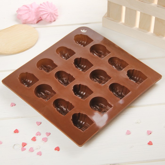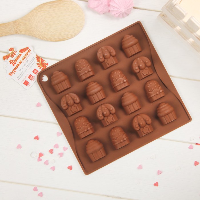 Форма для льда и шоколада "Капкейки", 16 ячеек, цвет шоколадный