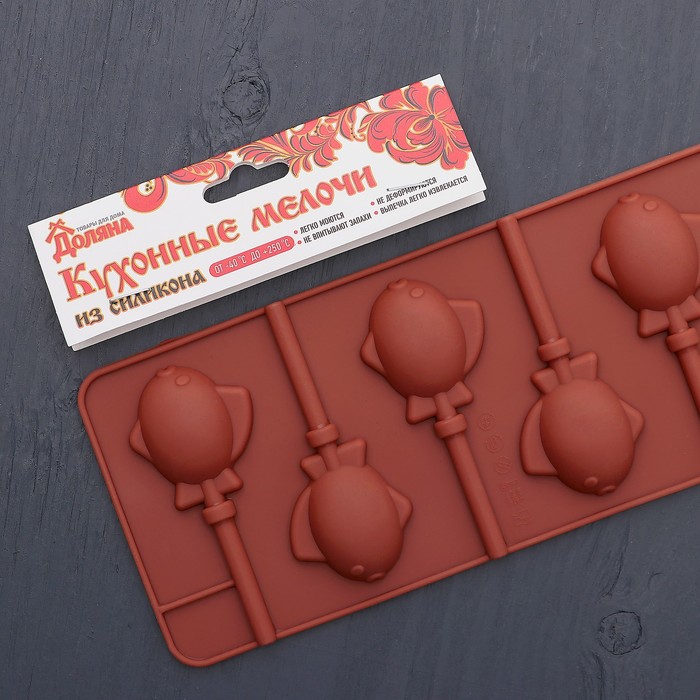 Форма для леденцов и мороженого "Рыбки", 6 ячеек, с палочками
