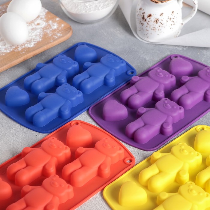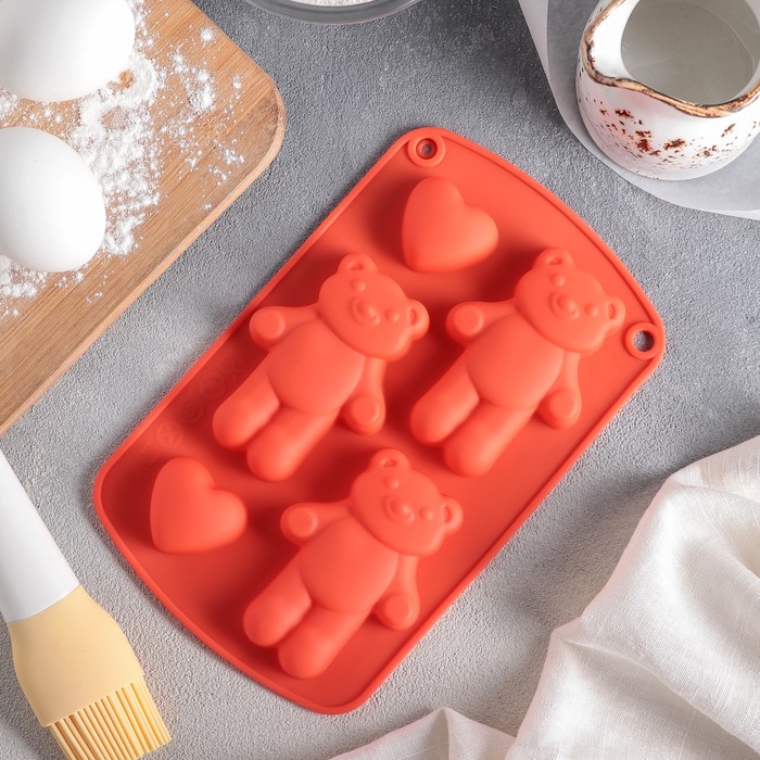 Форма для выпечки "Мишки с сердцами", 5 ячеек, цвета МИКС