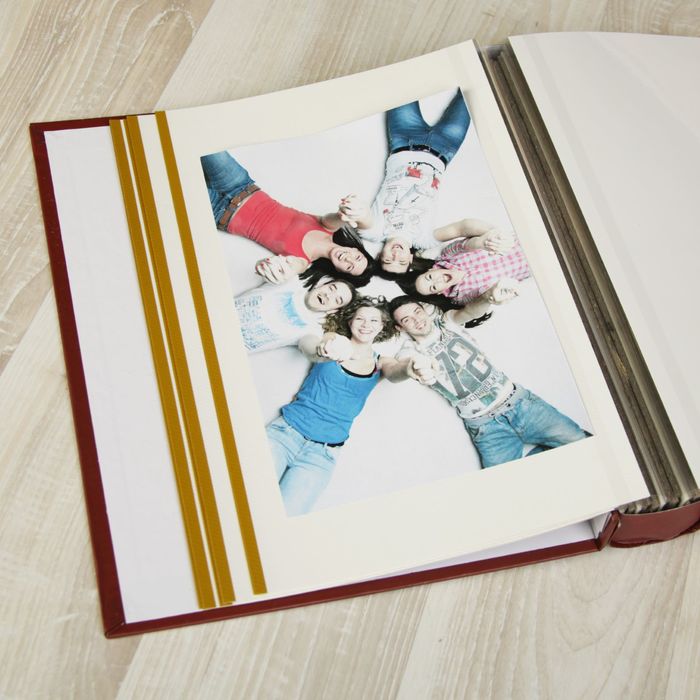 В магнитных фотоальбомах система крепления позволяет разместить на странице сразу несколько снимков. Кармашки для определённого формата изображений отсутствуют, а вместо этого на листах имеется закреплённая к краю клейкая прозрачная плёнка, которая легко отлепляется. Разложите фото, накройте плёнкой и разгладьте. Так каждый кадр останется защищённым от повреждений, а клейкая основа удержит его на месте.