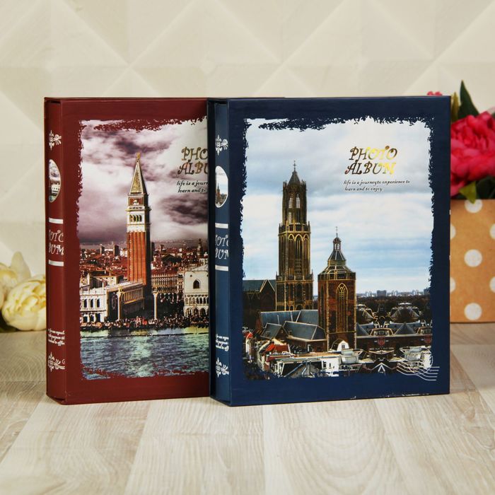 Фотоальбом магнитный 20 листов"Город с историей"с золотой обводкой в коробк МИКС 26х20,5х5см