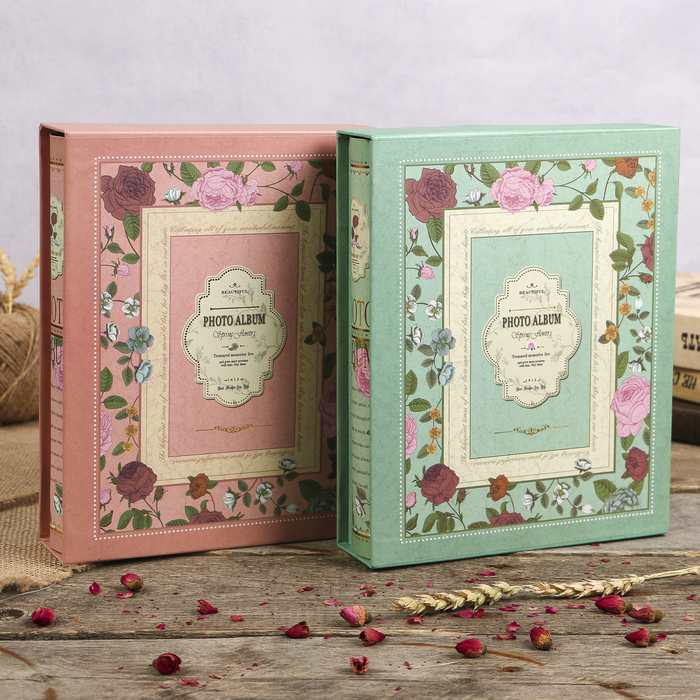 Фотоальбом на 100 фото 10х15 см "Цветочная рамка" в коробке МИКС 26х20,5х5 см