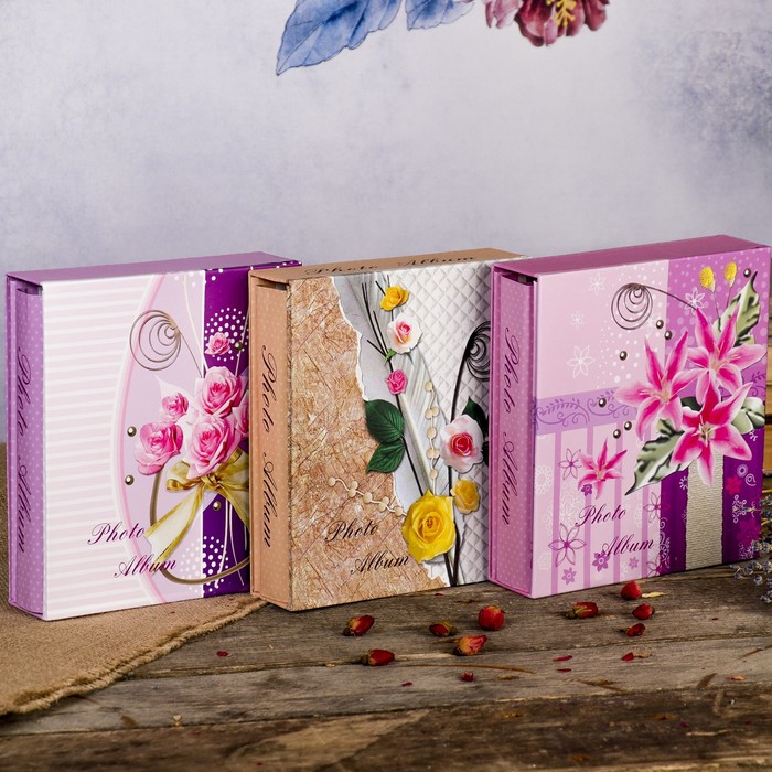Фотоальбом на 100 фото 13х18 см "Романтичный букет" в коробке МИКС 21,5х19х5,5 см