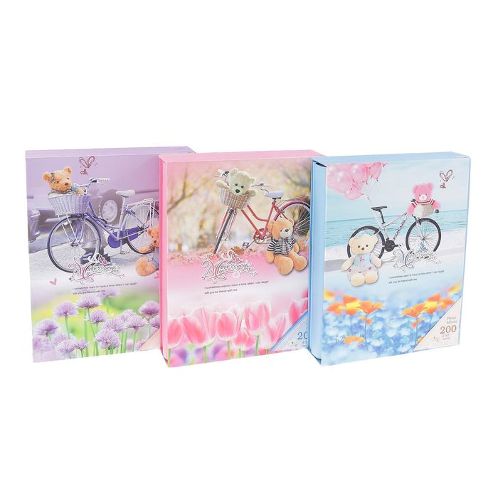 Фотоальбом на 200 фото 10х15 см "Мишка и велосипед" в коробке МИКС 25,5х20,5х5 см