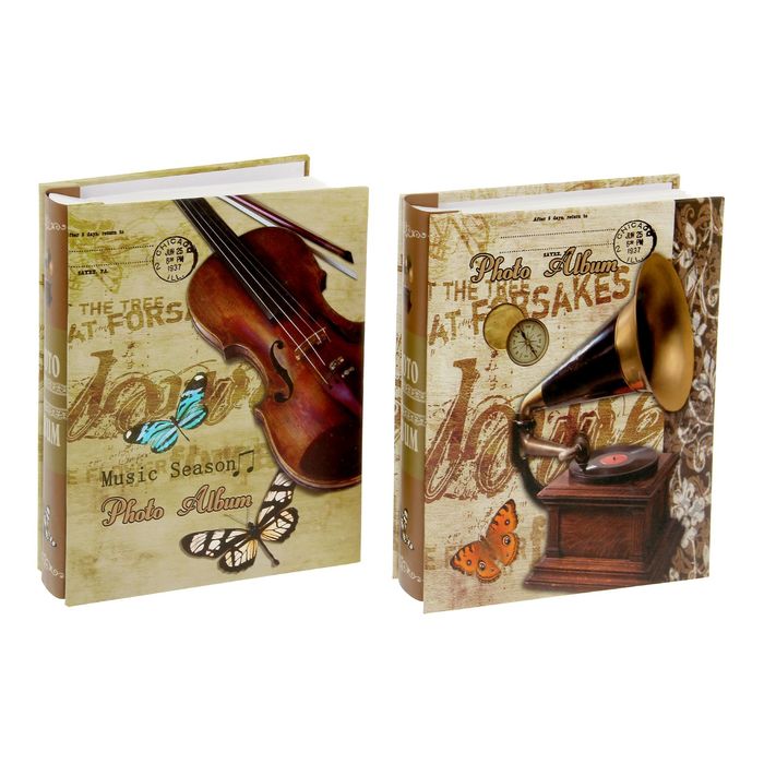 Фотоальбом на 200 фото 10х15 см "Музыка ретро" в коробке МИКС 26,5х21х5,5 см