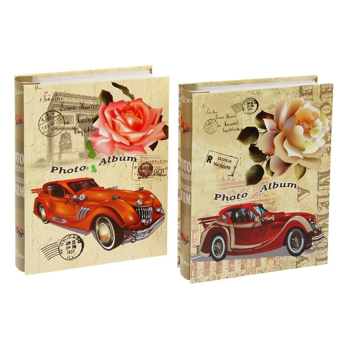 Фотоальбом на 200 фото 10х15 см "Ретроавто и цветы" в коробке МИКС 26,5х21х5,5 см