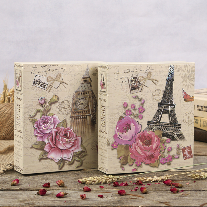 Фотоальбом на 40 фото 13х18 см "Башня и цветы" в коробке МИКС 20,5х18х5 см
