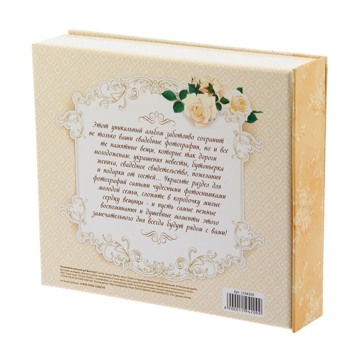 Этот замечательный альбом-шкатулка — универсальная кладовая для самых дорогих воспоминаний. Альбомные листы на крышке предназначены для 10 фотографий форматом 9 х 13 см и важных записей, а внутри него можно хранить милые сердцу вещицы и мелочи, которые есть у каждого человека! На внутренней стороне расположилась мини-анкета.