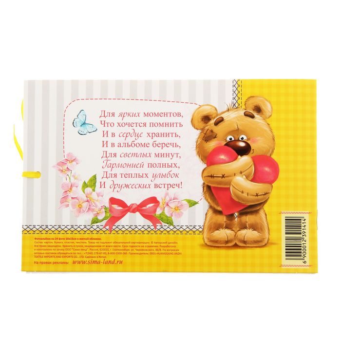 На цветных форзацах фотоальбома написаны приятные стихи, которые вы можете дополнить своими пожеланиями.