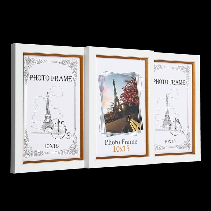 Фоторамка 20х37 см на 3 фото 10х15 см белый