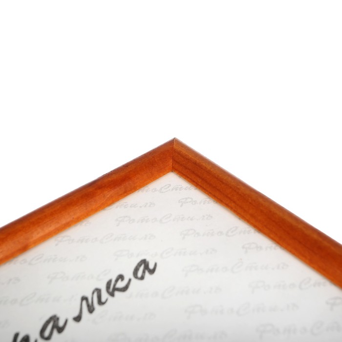 Рамка сделана из соснового багета, с внешней стороны фотографии находится защитное стекло. Багет обработан морилкой и покрыт лаком. Задник фоторамки выполнен из картона. В каждую рамку вложен фирменный вкладыш. Каждая рамка упакована в термопленку.