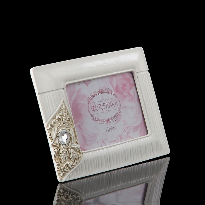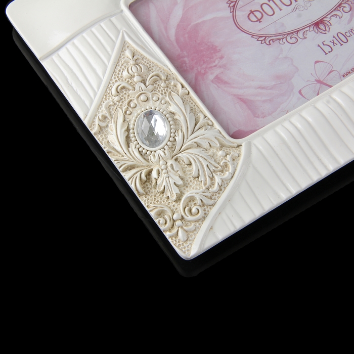 Фоторамка "Белый глянец с цветком" со стразами, 10х15 см