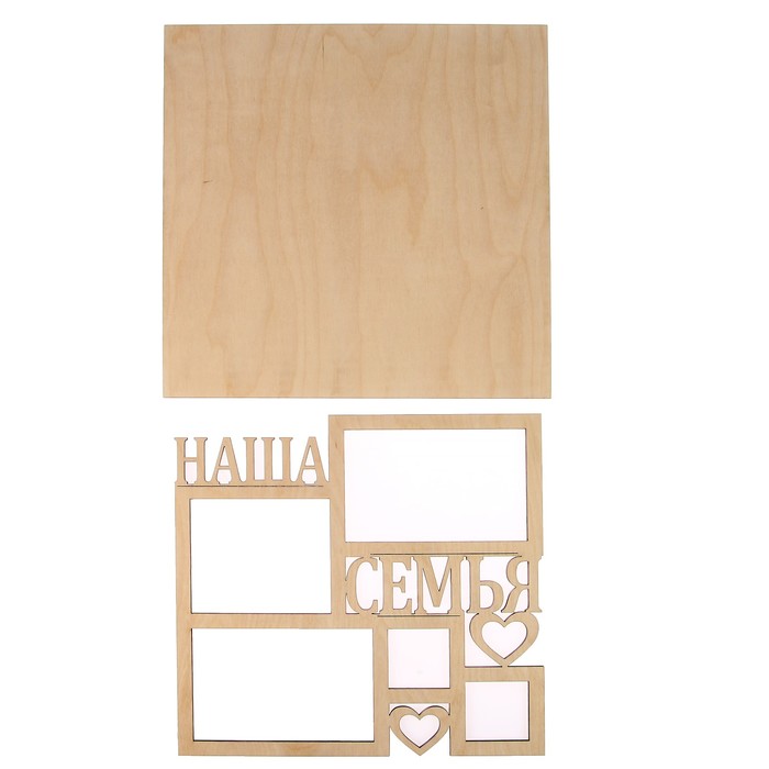 Фоторамка из фанеры "Наша семья (сердечки)" набор 2 детали 37х37 см