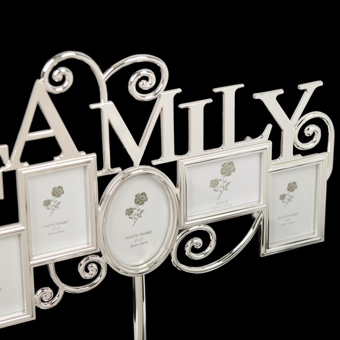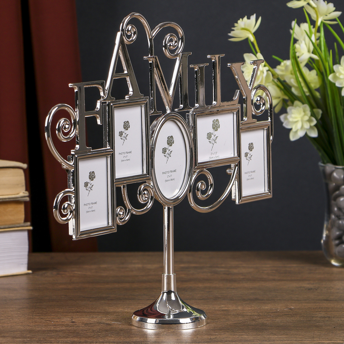 Фоторамка металл на 5 фото 4х6, 4,5х6,5 см "Семейная" серебро 24,5х28х5,9 см