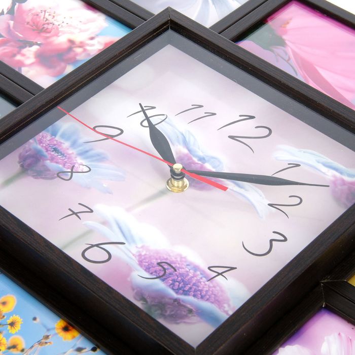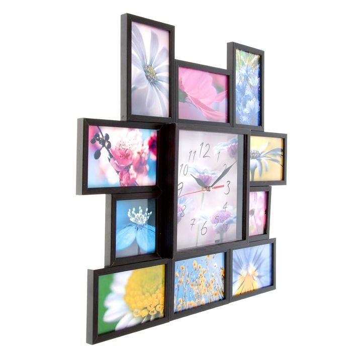 Фоторамка на 10 фото 10х10, 10х15 с часами, венге "Цветы"