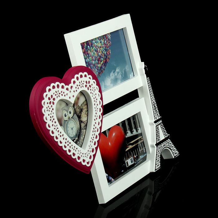 Фоторамка на 3 фото 10х10 см, 10х15 см "Париж" ажурное сердце