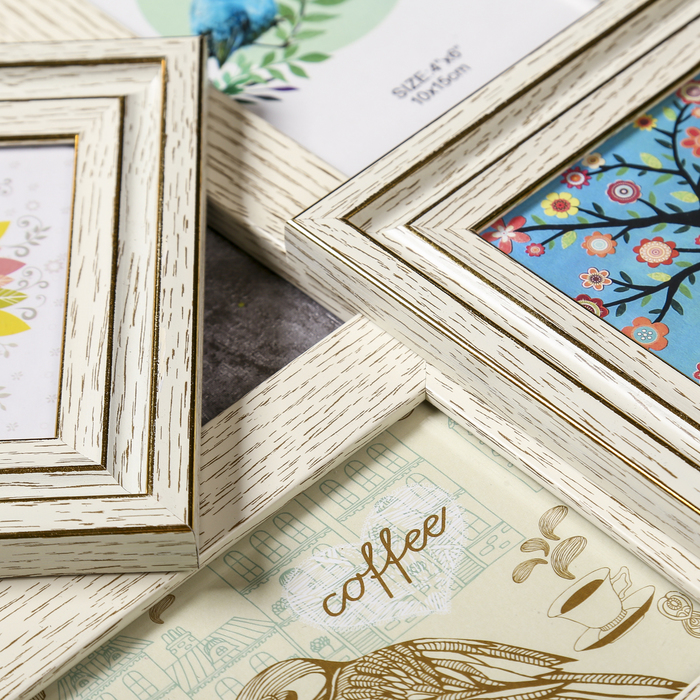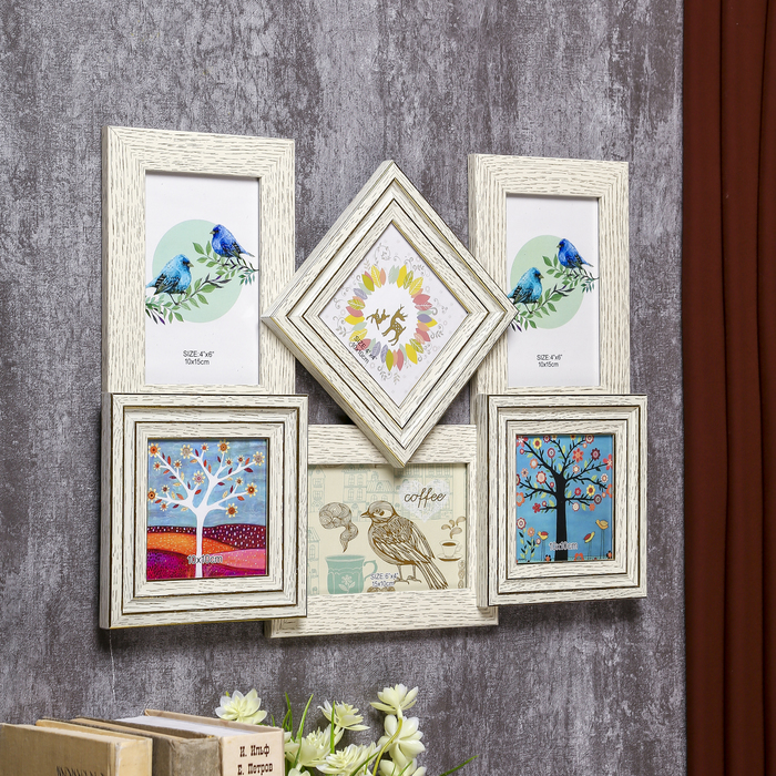 Фоторамка на 6 фото 10х10, 10х15 см "Белая с прожилками" 32х45,5 см