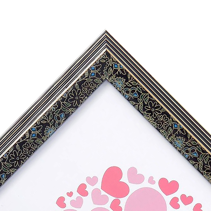 Фоторамка пластик 20х25 см "Цветочная лестница" чёрная с золотом
