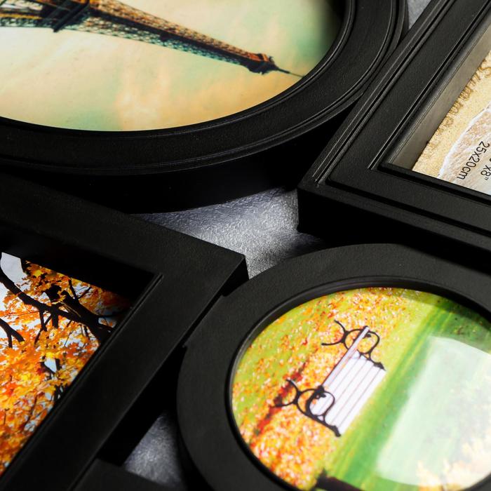 Фоторамка пластик на 10 фото 10х10, 10х15, 13х18, 15х20, 20х25 см "Корона" чёрная 45х80 см