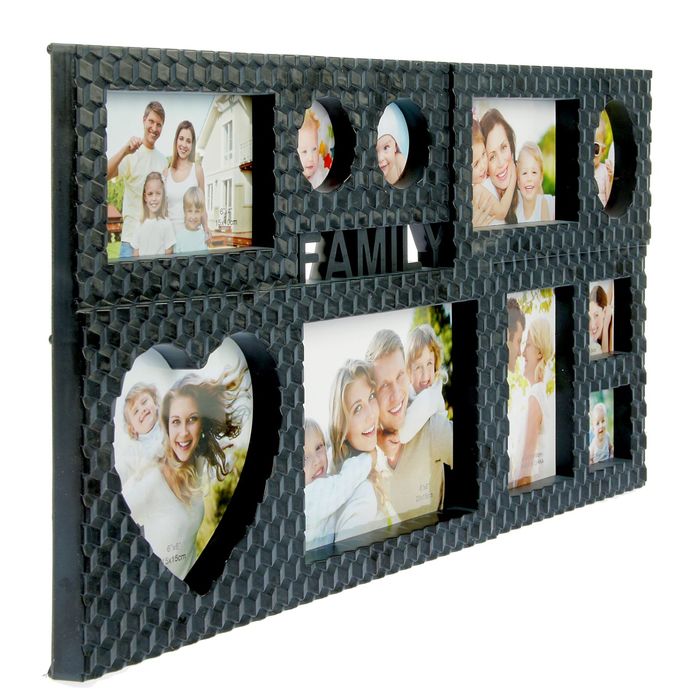 Фоторамка пластик на 10 фото 7х7, 7,5х10, 7,7х7,5, 10х15, 15х20см "Семья" чёрная 63,5х34х3см