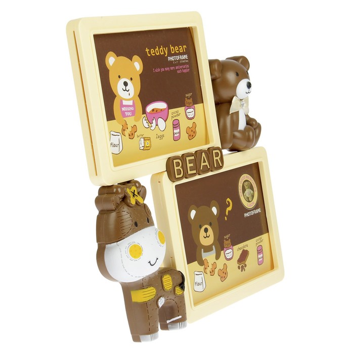 Фоторамка пластик на 2 фото 13х18см "Мишка и ослик" МИКС 30х29,5 см