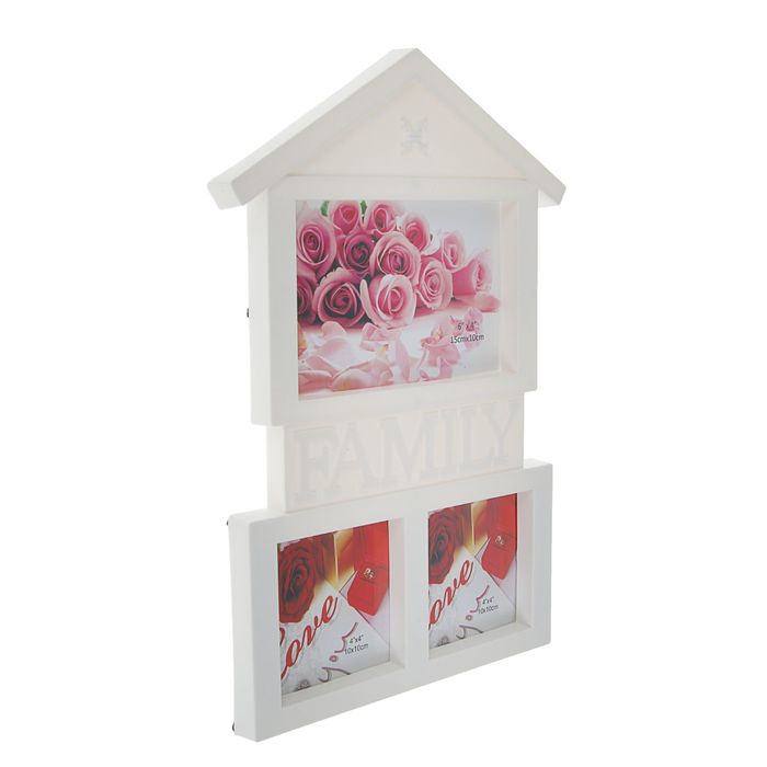 Фоторамка пластик на 3 фото 10х10 см, 10х15 см "Наш дом", белая 32х22 см