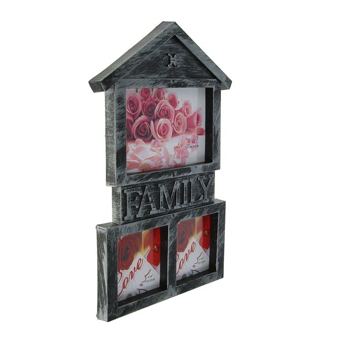 Фоторамка пластик на 3 фото 10х10 см, 10х15 см "Наш дом", серебро 32х22 см