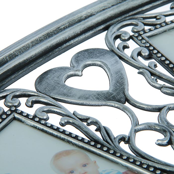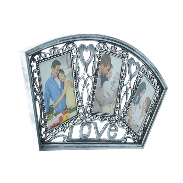 Фоторамка пластик на 3 фото 10х15 см "Любовь. Сердца" состаренное серебро 27х56 см