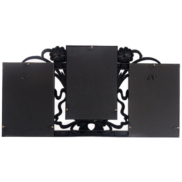 Фоторамка пластик на 3 фото 10х15 см "Незабудки и бант" чёрная 21,5х41 см