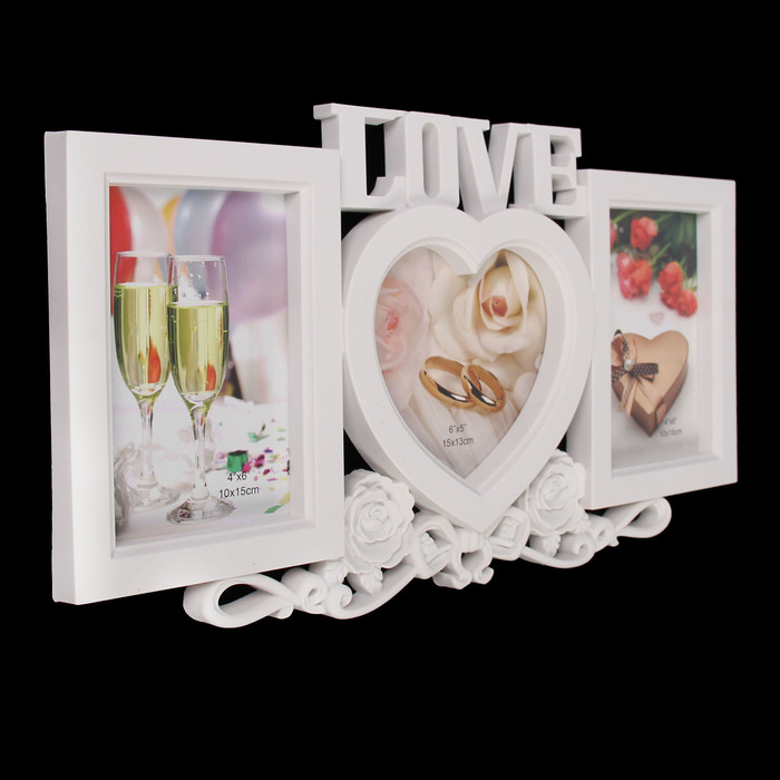 Фоторамка пластик на 3 фото 9х13, 10х15 см "Любовь и розы" белая 22х40,5 см