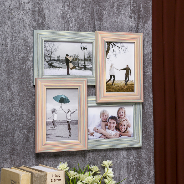 Фоторамка пластик на 4 фото 10х15 см "Радужные полосы" 32х31,8 см