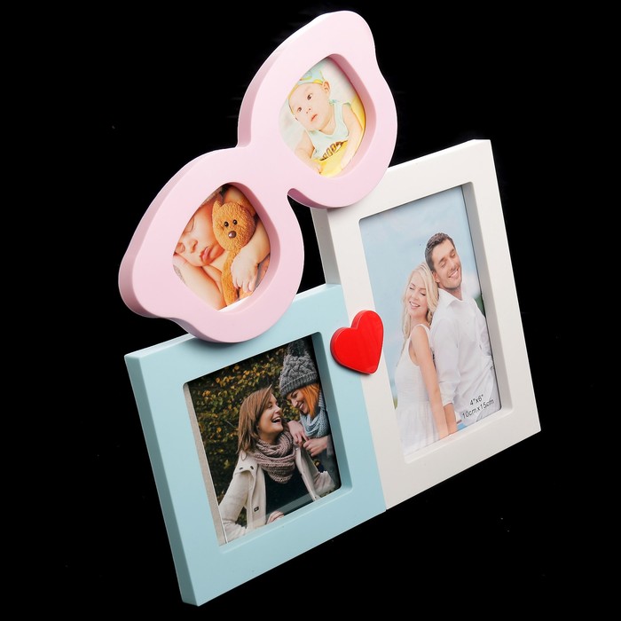 Фоторамка пластик на 4 фото 6х6, 9х9, 10х15 см "Розовые очки" 28х27 см