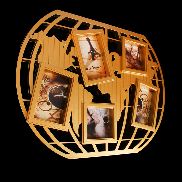 Фоторамка пластик на 5 фото 10х10, 10х15 см "Карта" золото 41,5х53 см