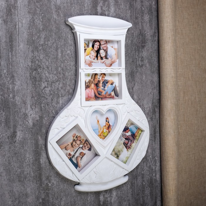 Фоторамка пластик на 5 фото 10х15, 12х12 см "Ваза" 58х39 см