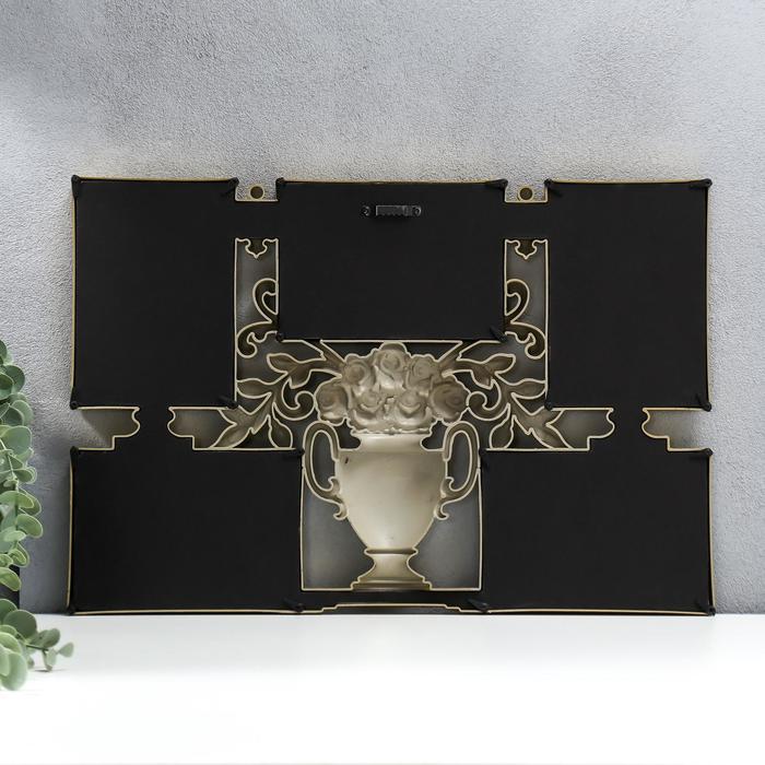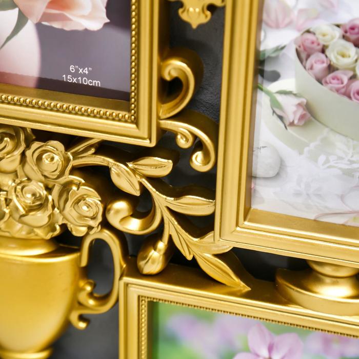 Фоторамка пластик на 5 фото 10х15 см "Ваза с цветами" золотая 31х46 см