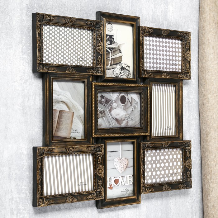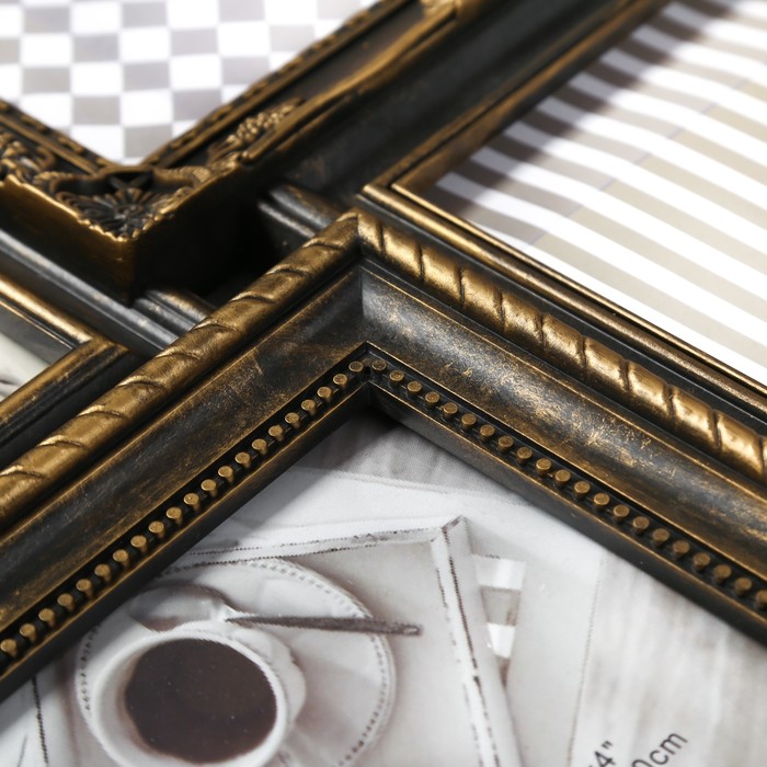 Фоторамка пластик на 6 фото 10х15 см "Орнамент" тёмное золото 33х49 см