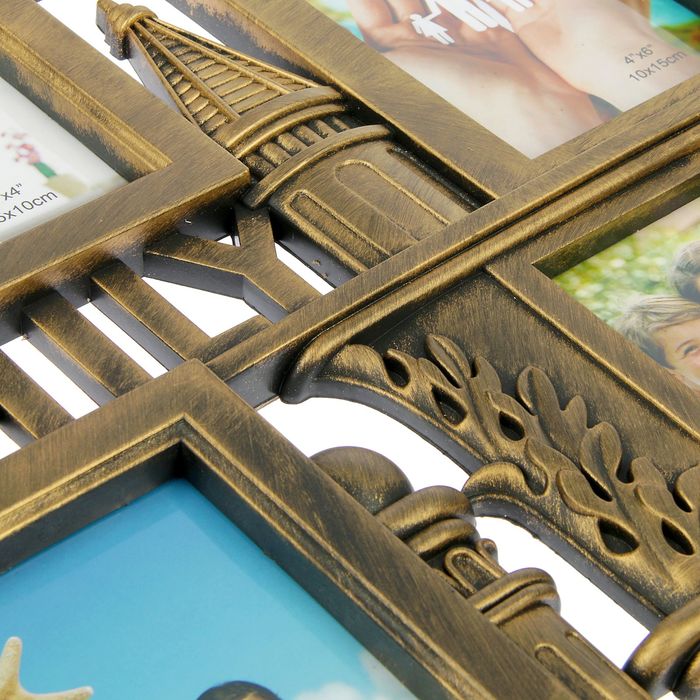 Фоторамка пластик на 6 фото 10х15 см "Счастливая семья" тёмное золото 35,5х56,5х2 см