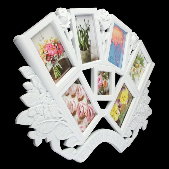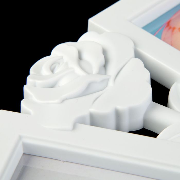 Фоторамка пластик на 7 фото 10х10, 10х15 см "Букет роз" белая 36х67 см