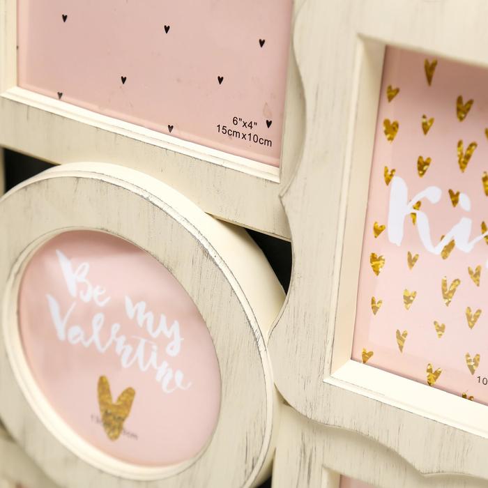 фоторамка пластик на 7 фото 10х15, 13х13 см "Фигурная" бежевая 43х40,5 см