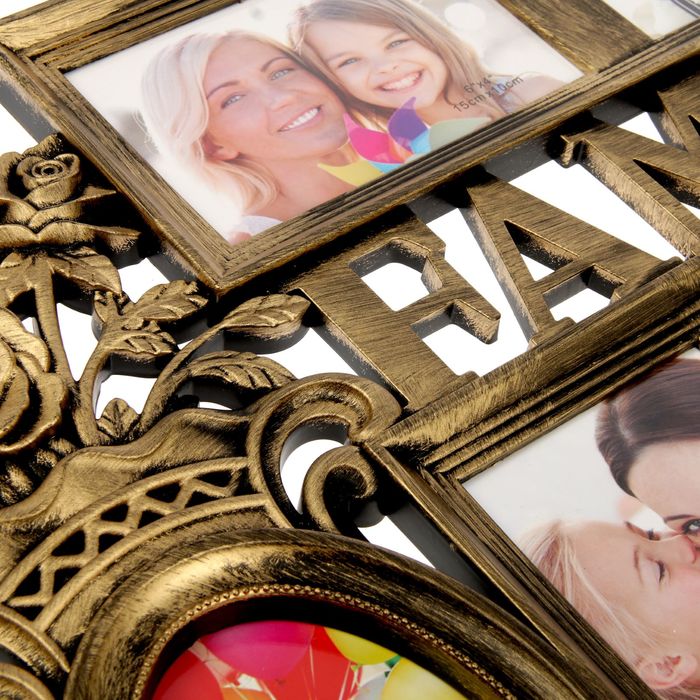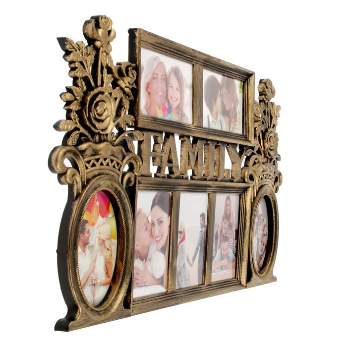 Фоторамка пластик на 7 фото 10х15 см "Ваза с цветами" золото 36,5х63 см