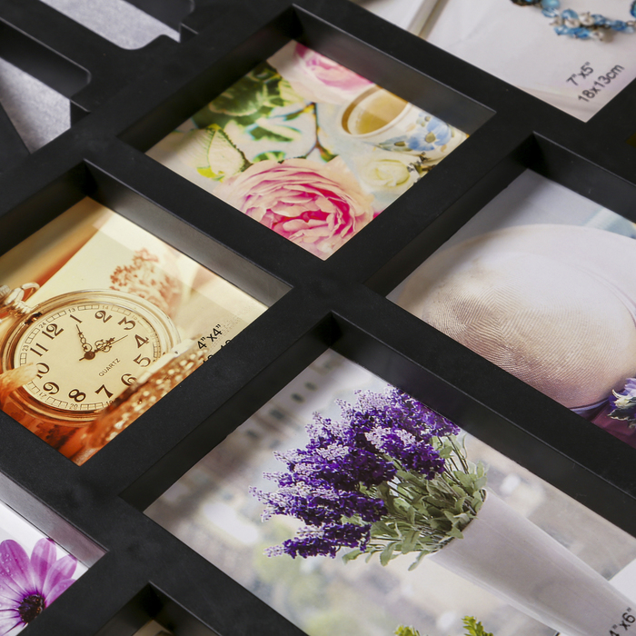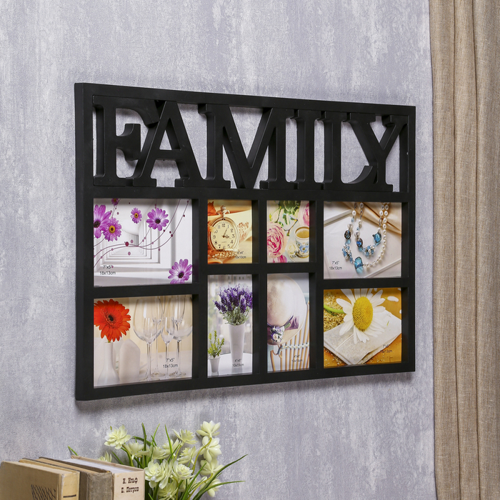 Фоторамка пластик на 8 фото 10х10, 10х15, 13х18 см "Семейная" чёрная 42х59 см